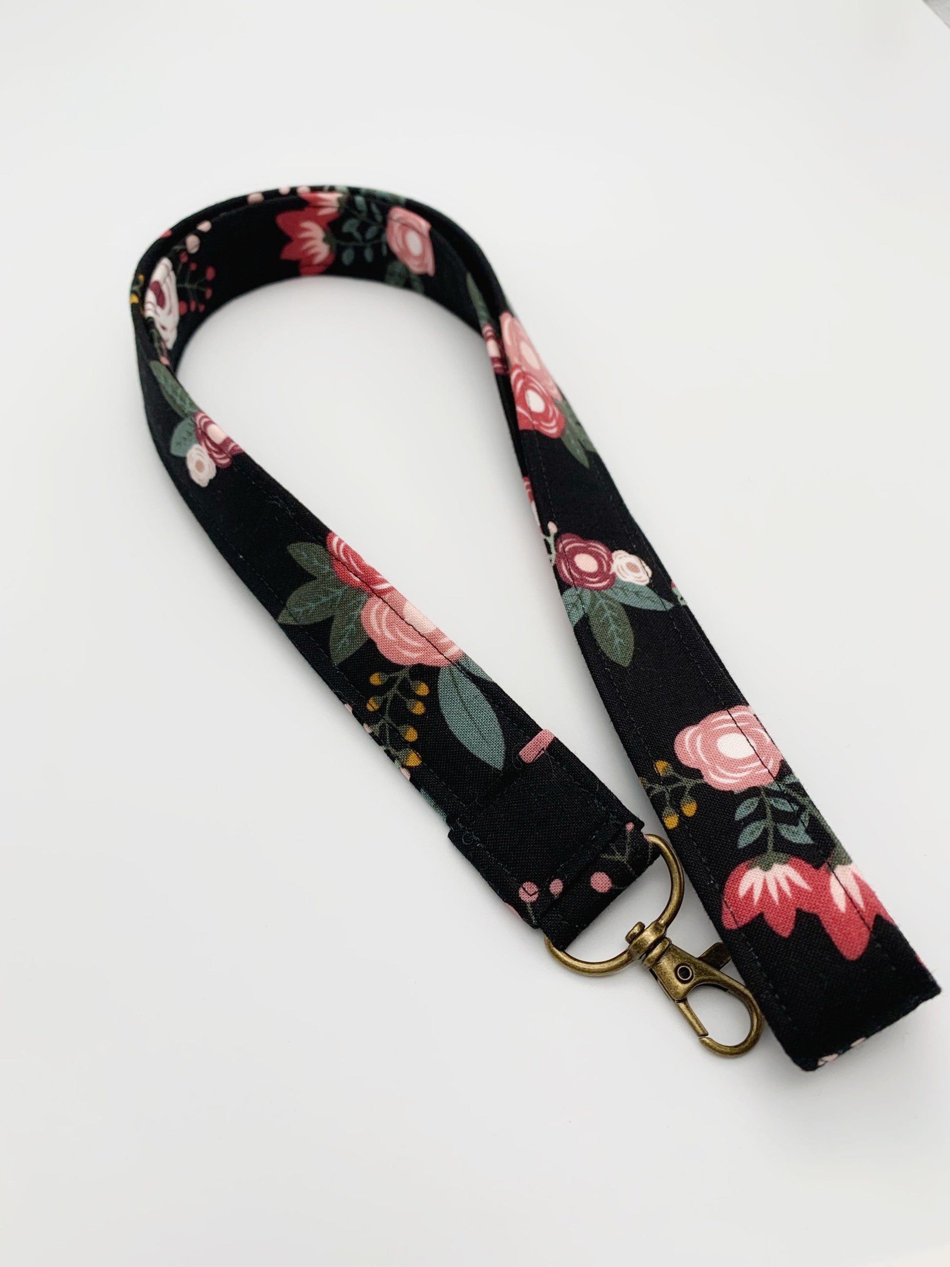 Black, Mauve Vintage Floral Lanyard ID Badge Holder