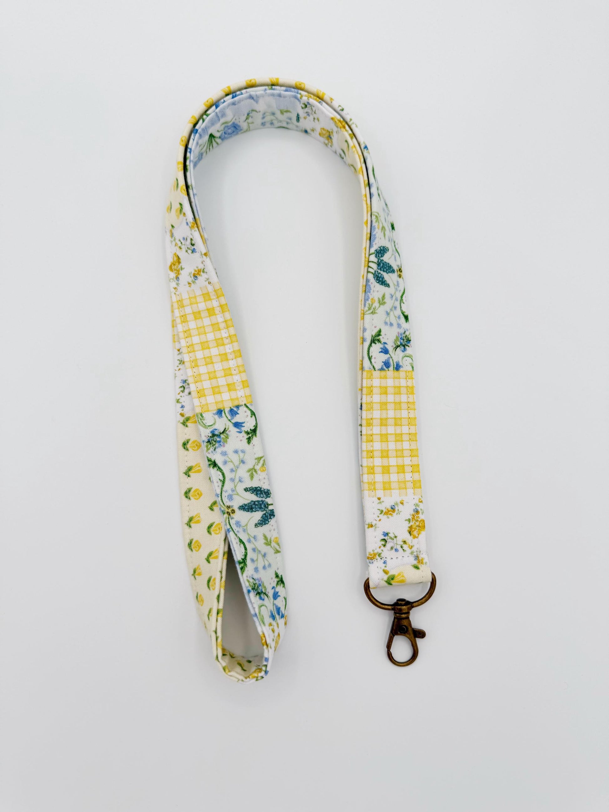 Blue Yellow Vintage Patchwork Lanyard Badge Holder