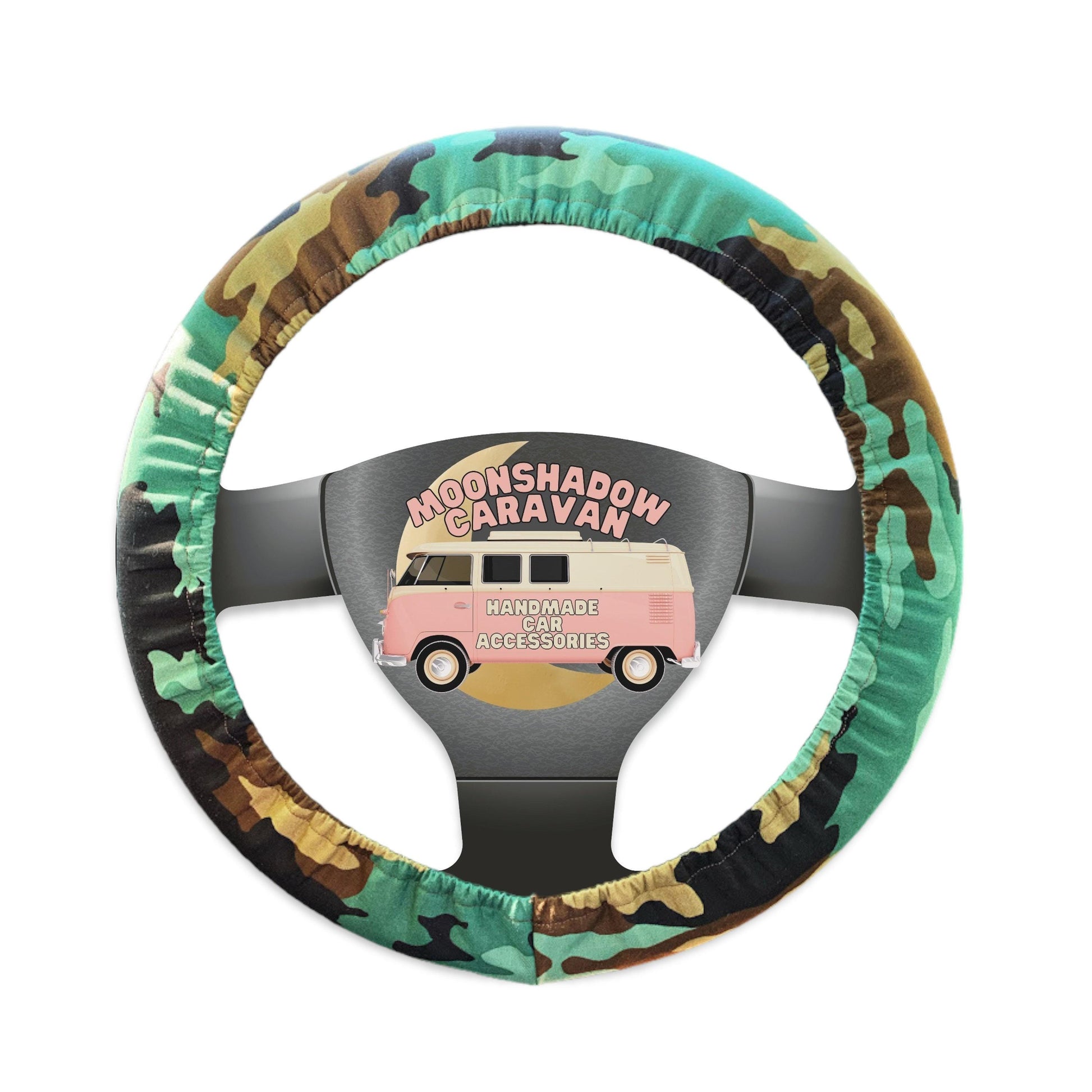 This camouflage handmade steering wheel cover is perfect for protecting your hands in cold and hot weather! Simply select your size for a custom fit and add some personality to your ride!