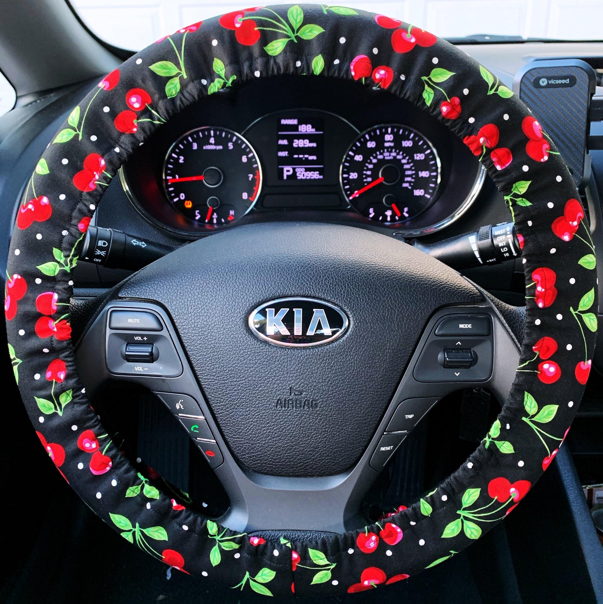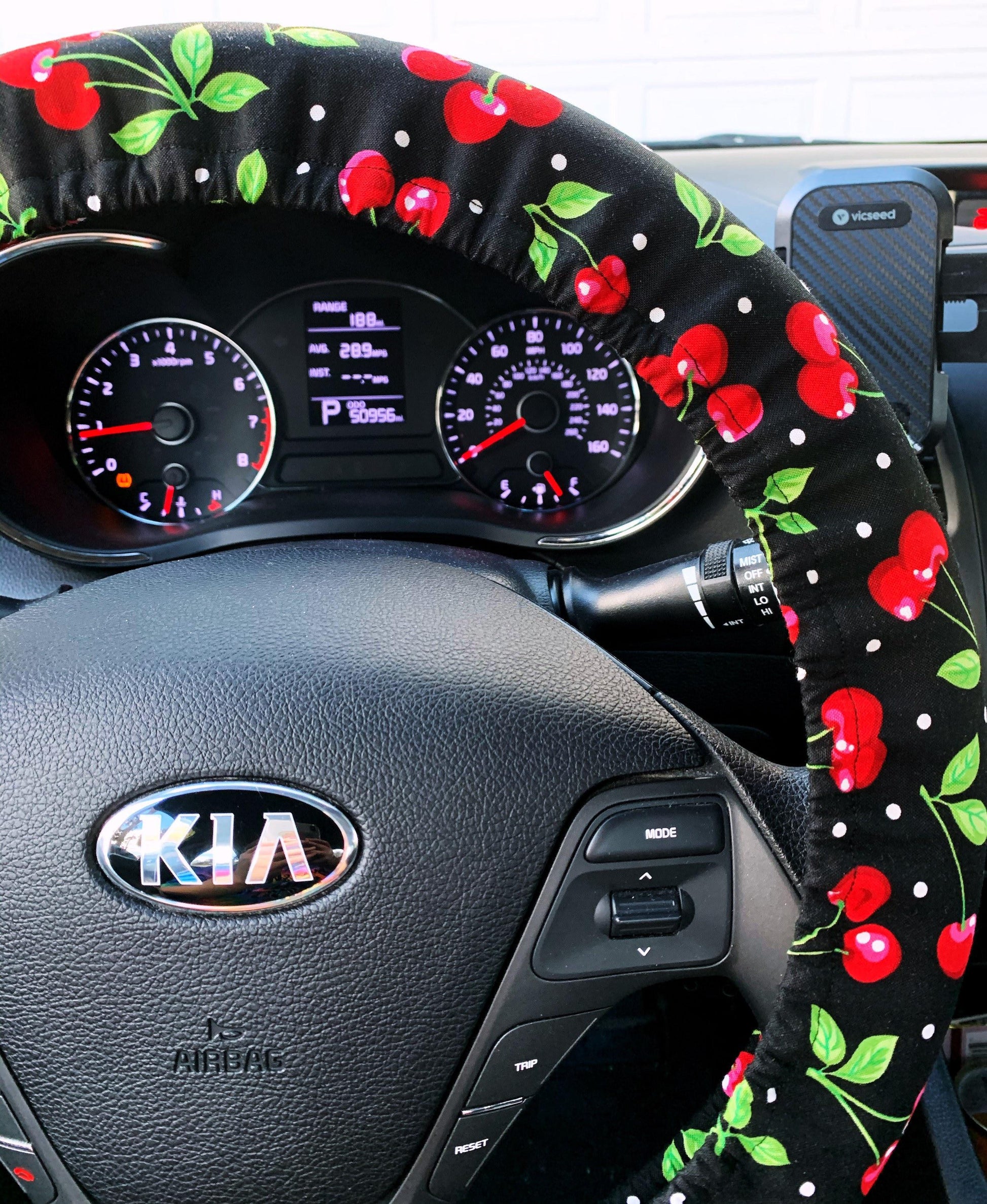 This cherry polka dot handmade steering wheel cover is perfect for protecting your hands in cold and hot weather! Simply select your size for a custom fit and add some personality to your ride!