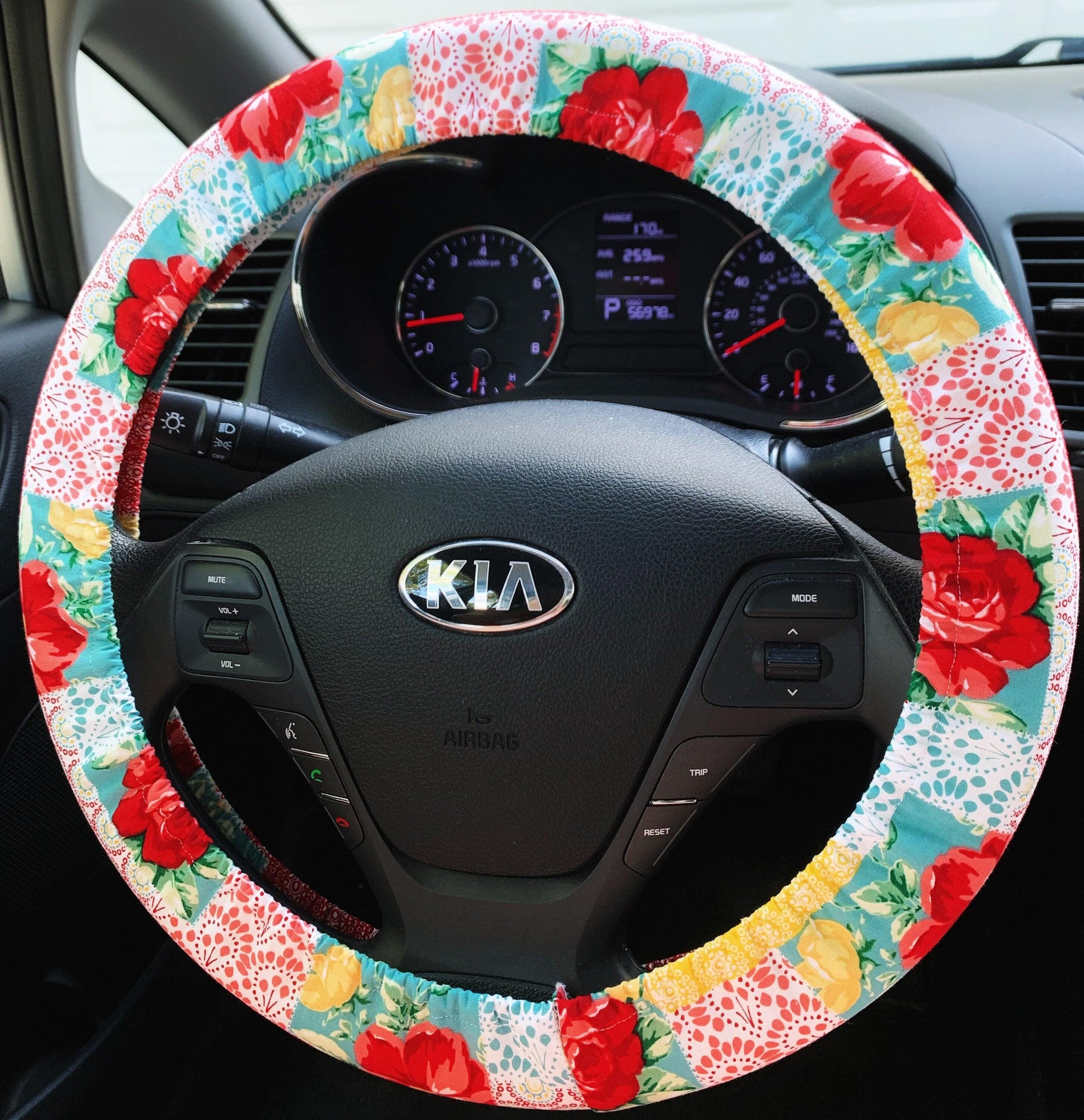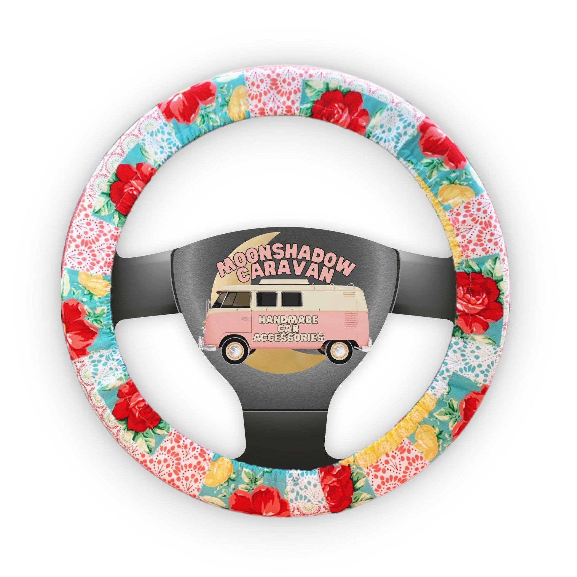 This rose patchwork handmade steering wheel cover is perfect for protecting your hands in cold and hot weather! Simply select your size for a custom fit and add some personality to your ride!