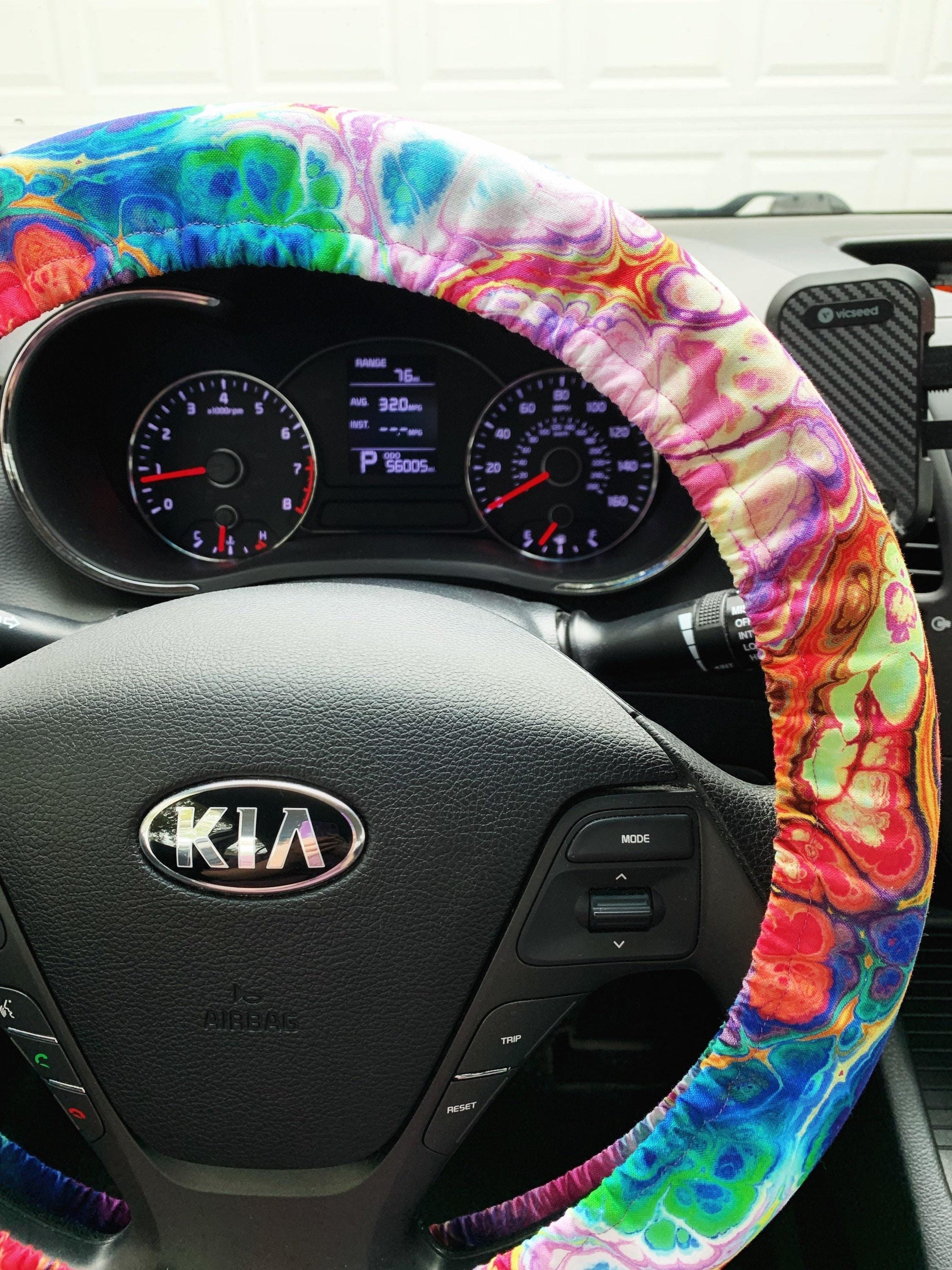 This fluid paint handmade steering wheel cover is perfect for protecting your hands in cold and hot weather! Simply select your size for a custom fit and add some personality to your ride!