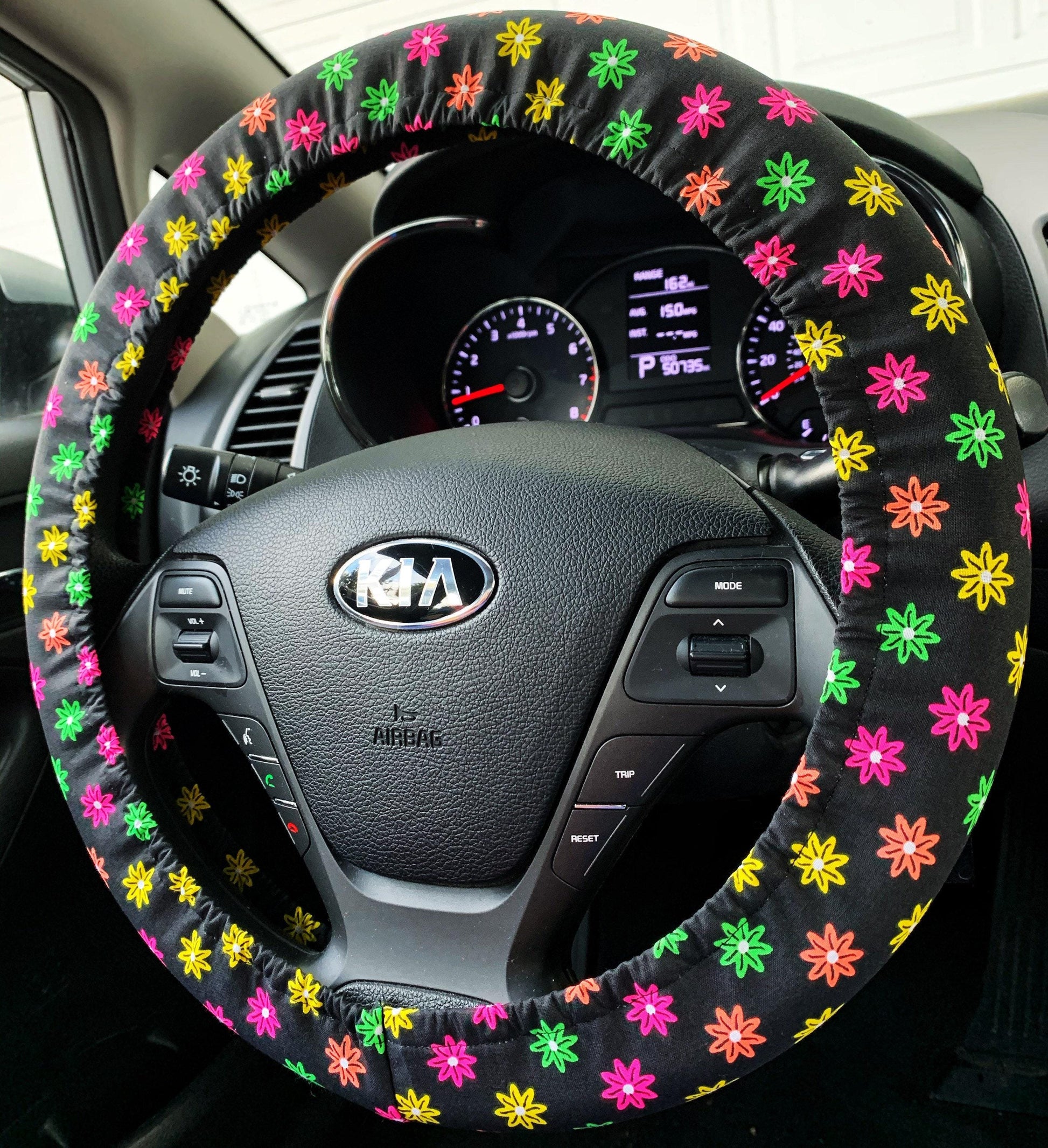 This neon flower handmade steering wheel cover is perfect for protecting your hands in cold and