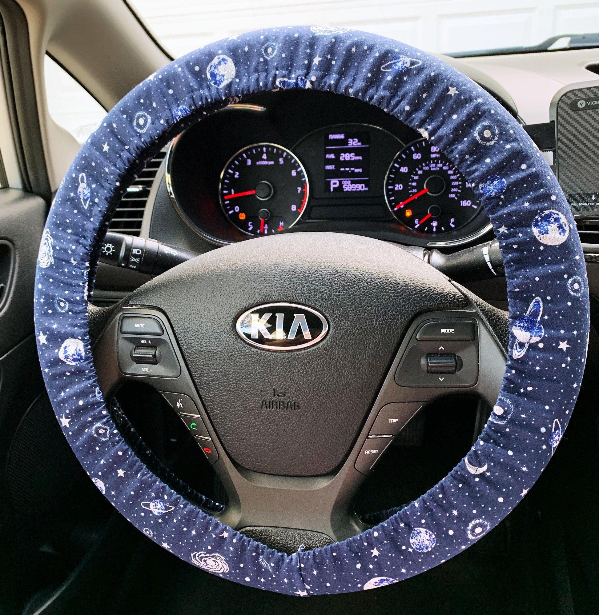 This navy galaxy handmade steering wheel cover is perfect for protecting your hands in cold and hot weather! Simply select your size for a custom fit and add some personality to your ride!