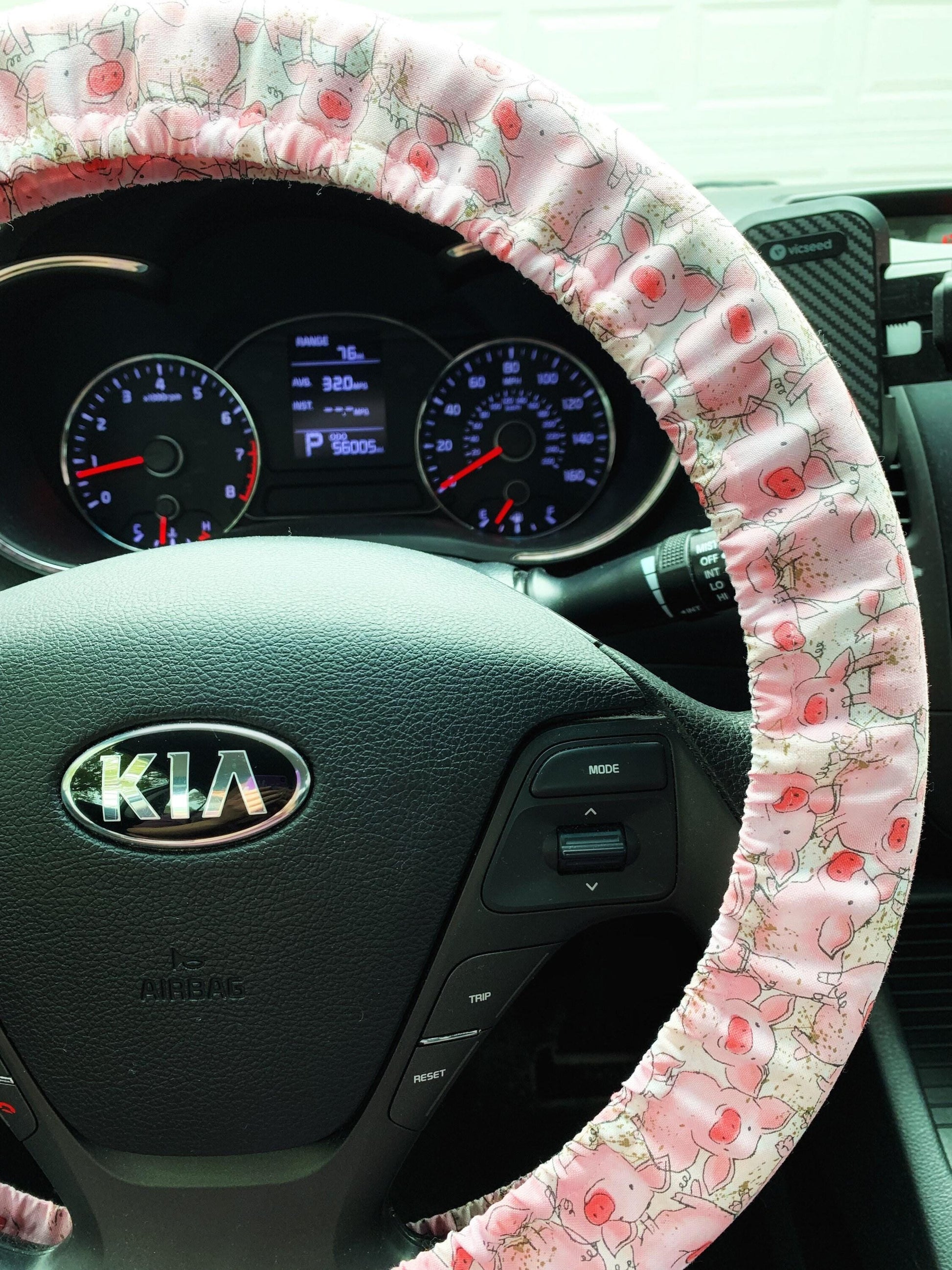 This pig handmade steering wheel cover is perfect for protecting your hands in cold and hot weather! Simply select your size for a custom fit and add some personality to your ride!