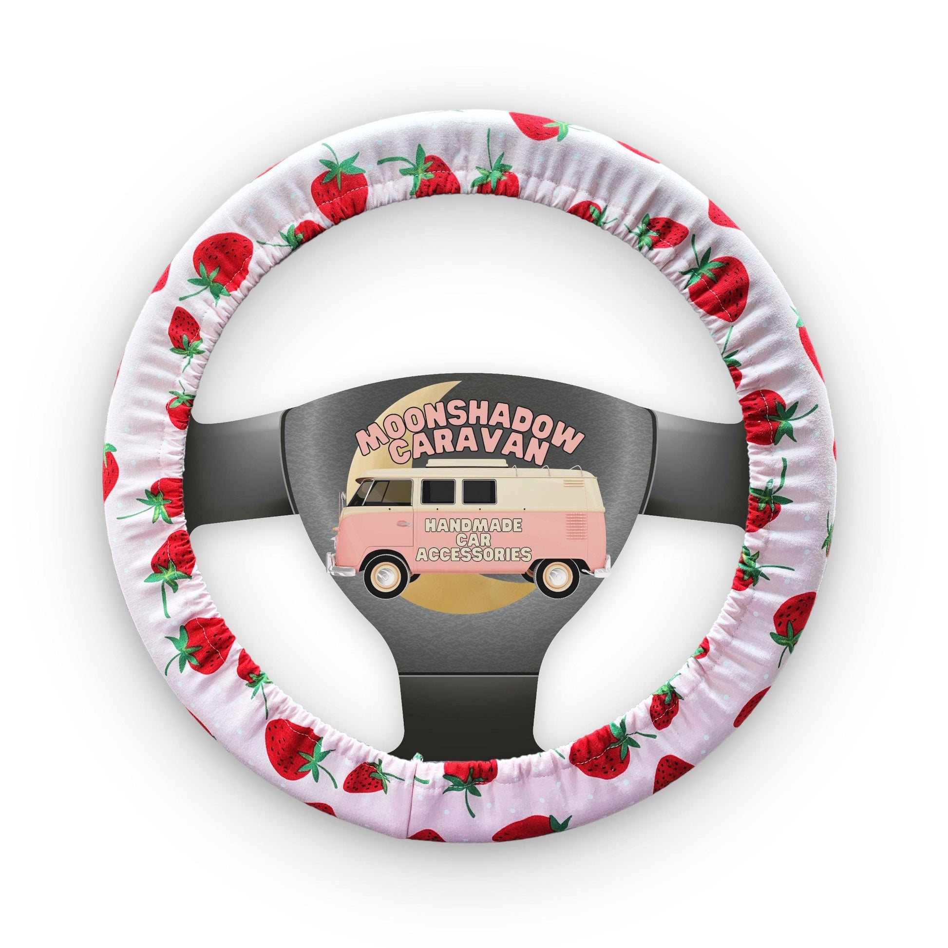This light pink strawberry handmade steering wheel cover is perfect for protecting your hands in cold and hot weather! Simply select your size for a custom fit and add some personality to your ride!