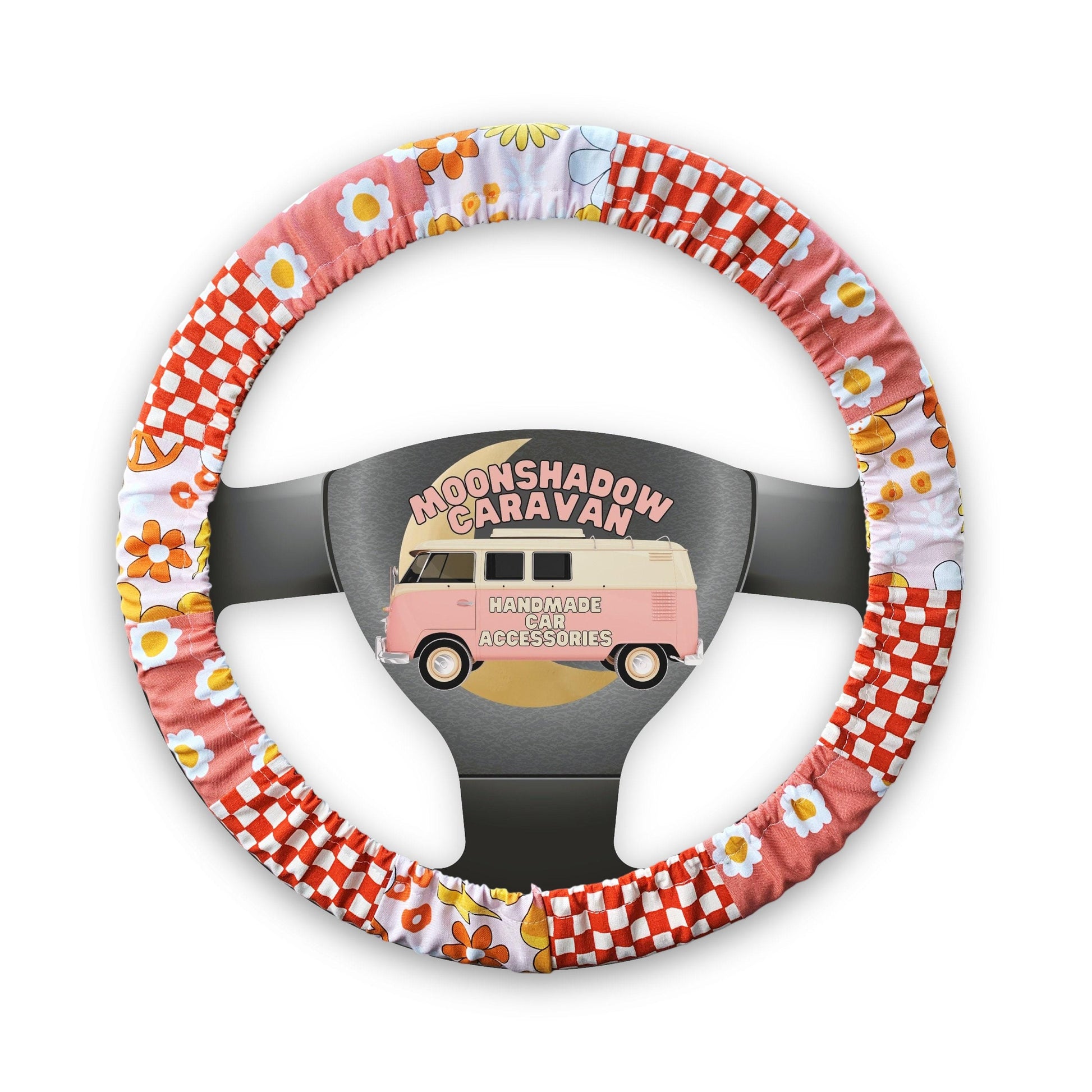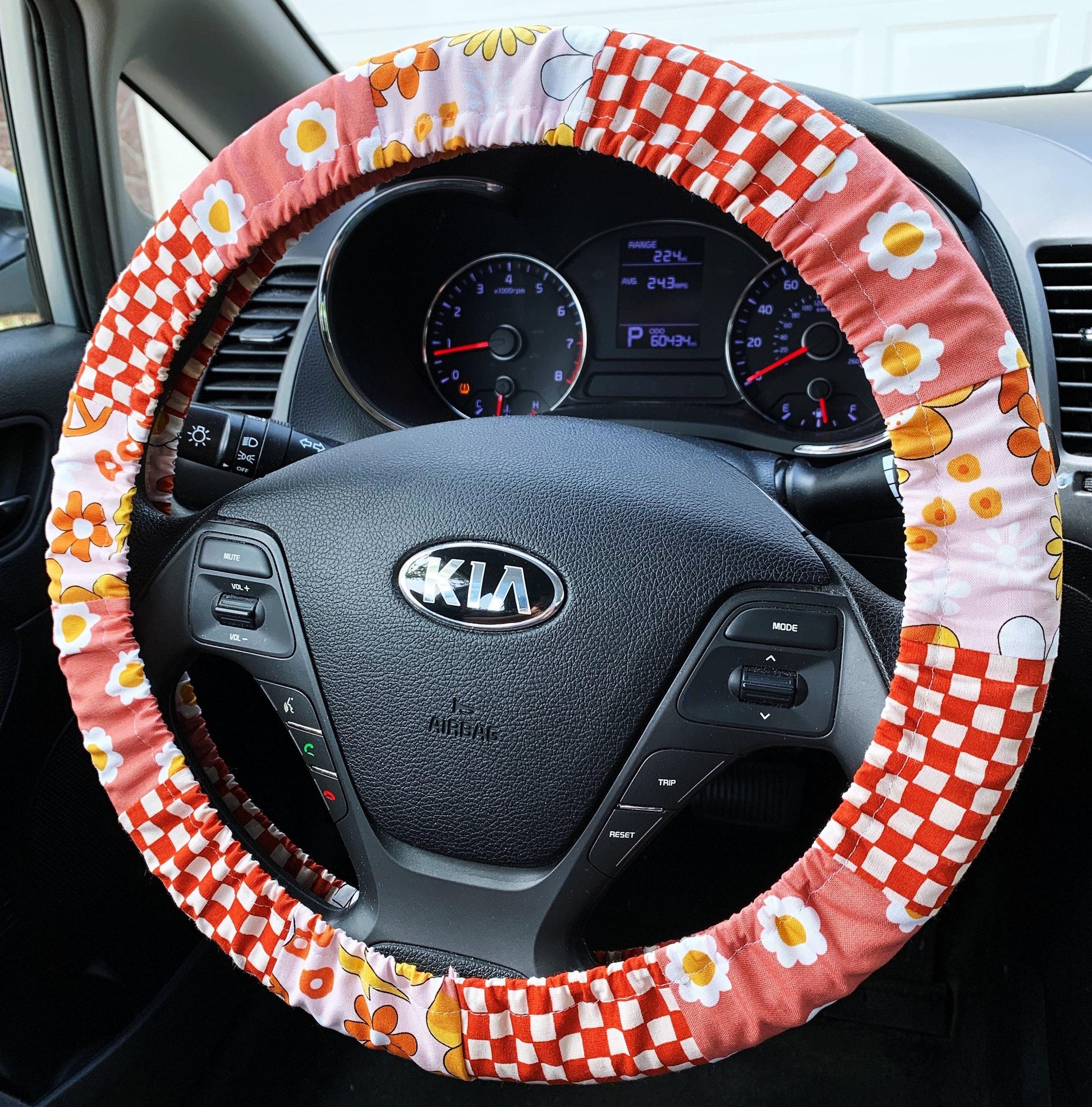 This retro patchwork handmade steering wheel cover is perfect for protecting your hands in cold and hot weather! Simply select your size for a custom fit and add some personality to your ride!