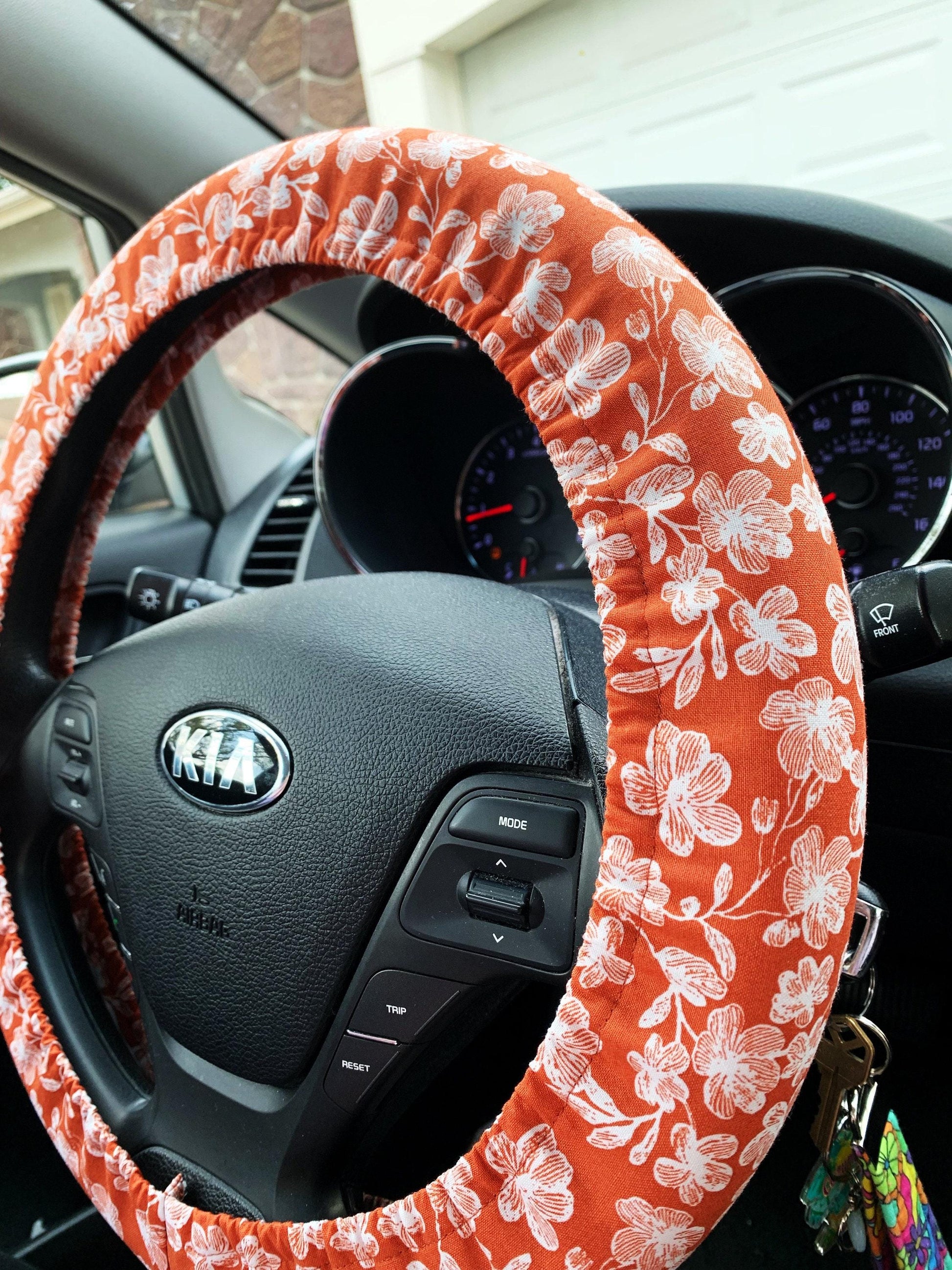 This rust boho floral handmade steering wheel cover is perfect for protecting your hands in cold and hot weather! Simply select your size for a custom fit and add some personality to your ride!