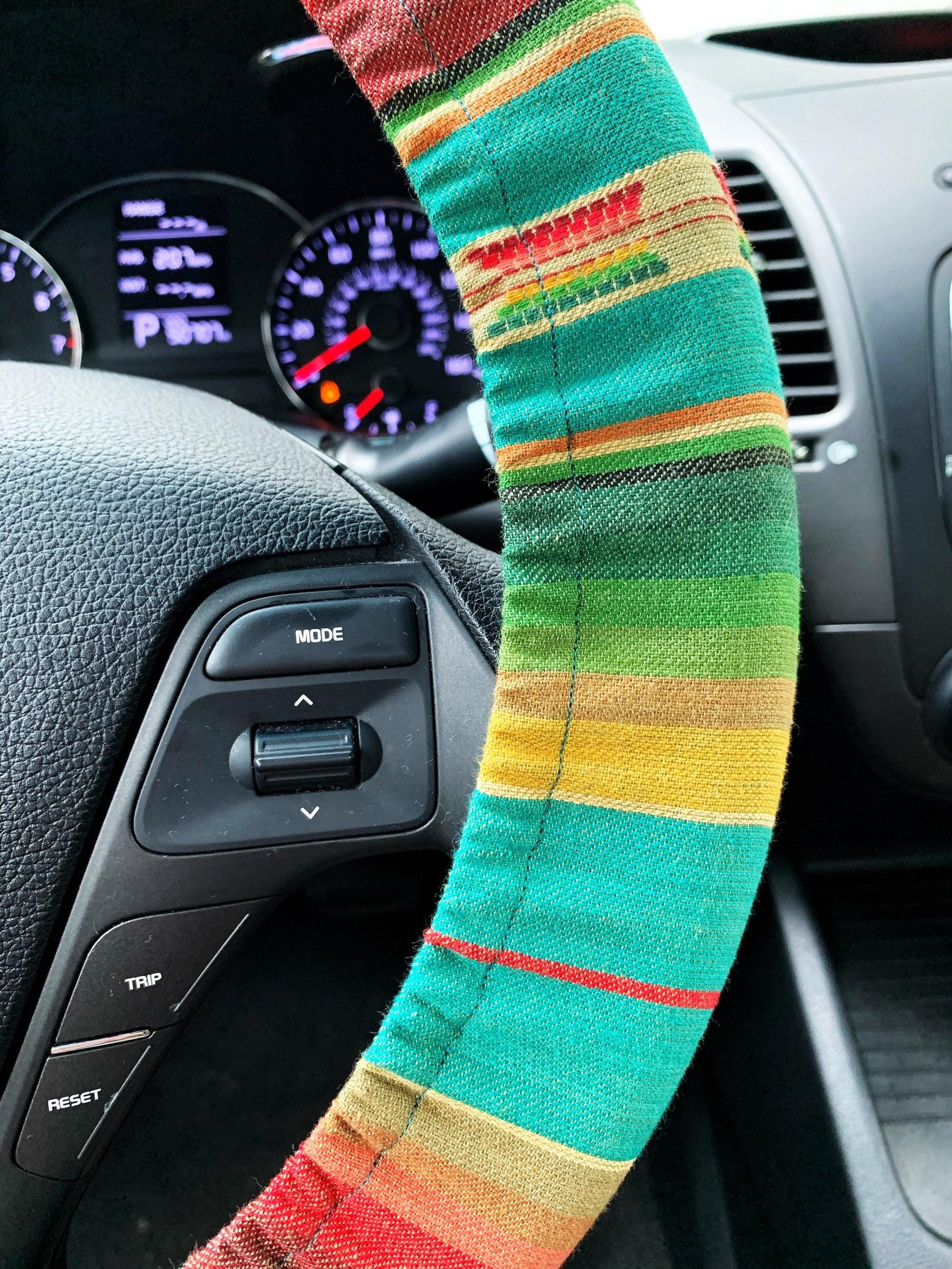 This western serape homespun handmade steering wheel cover is perfect for protecting your hands in cold and hot weather! Simply select your size for a custom fit and add some personality to your ride!