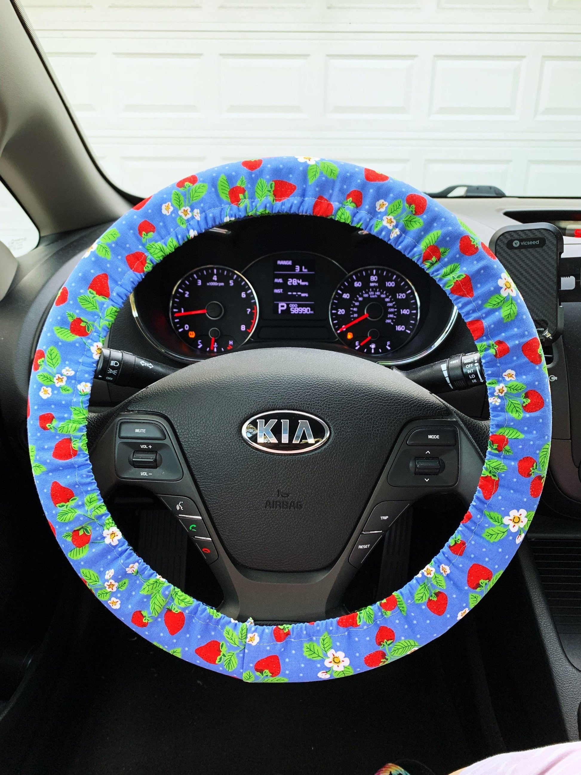 This blue strawberry handmade steering wheel cover is perfect for protecting your hands in cold and hot weather! Simply select your size for a custom fit and add some personality to your ride!