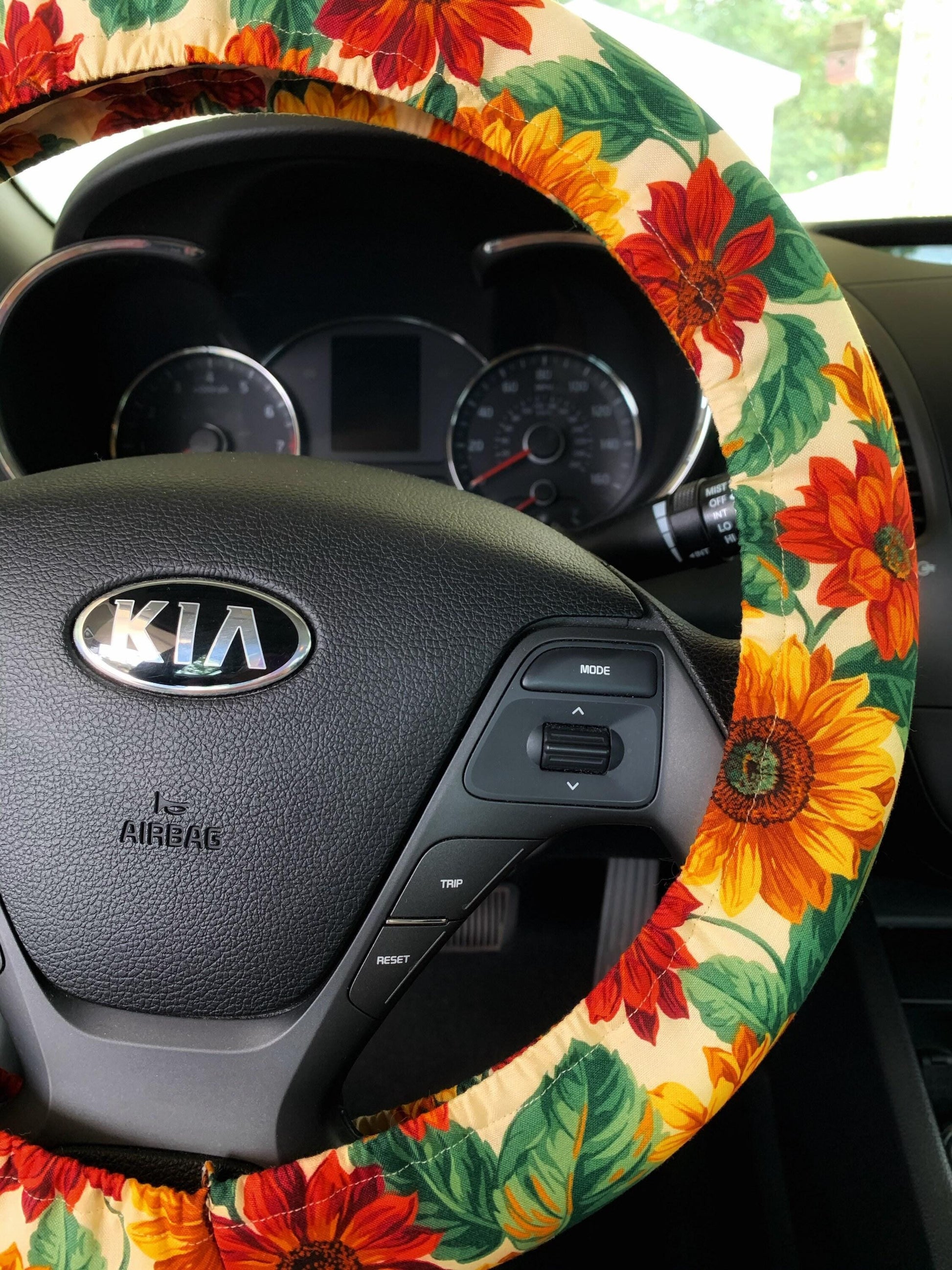 This sunflower handmade steering wheel cover is perfect for protecting your hands in cold and hot weather! Simply select your size for a custom fit and add some personality to your ride!