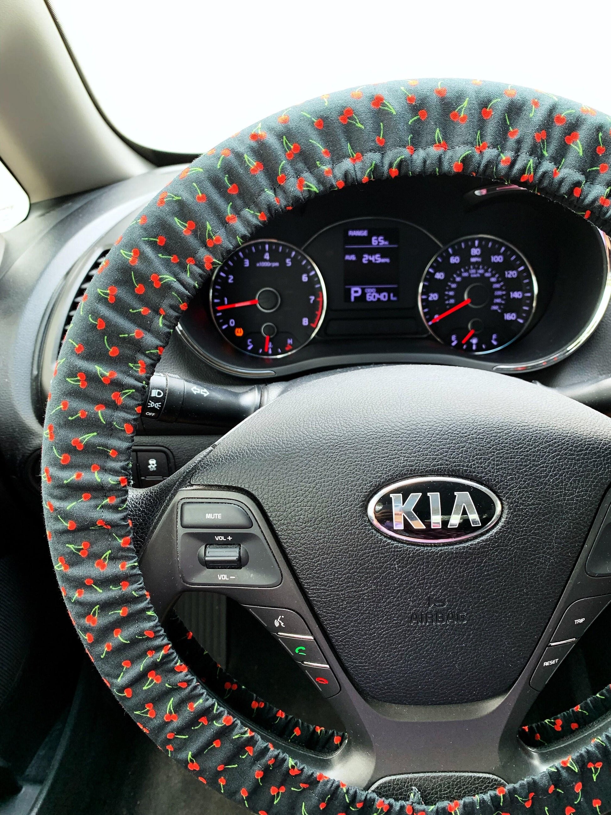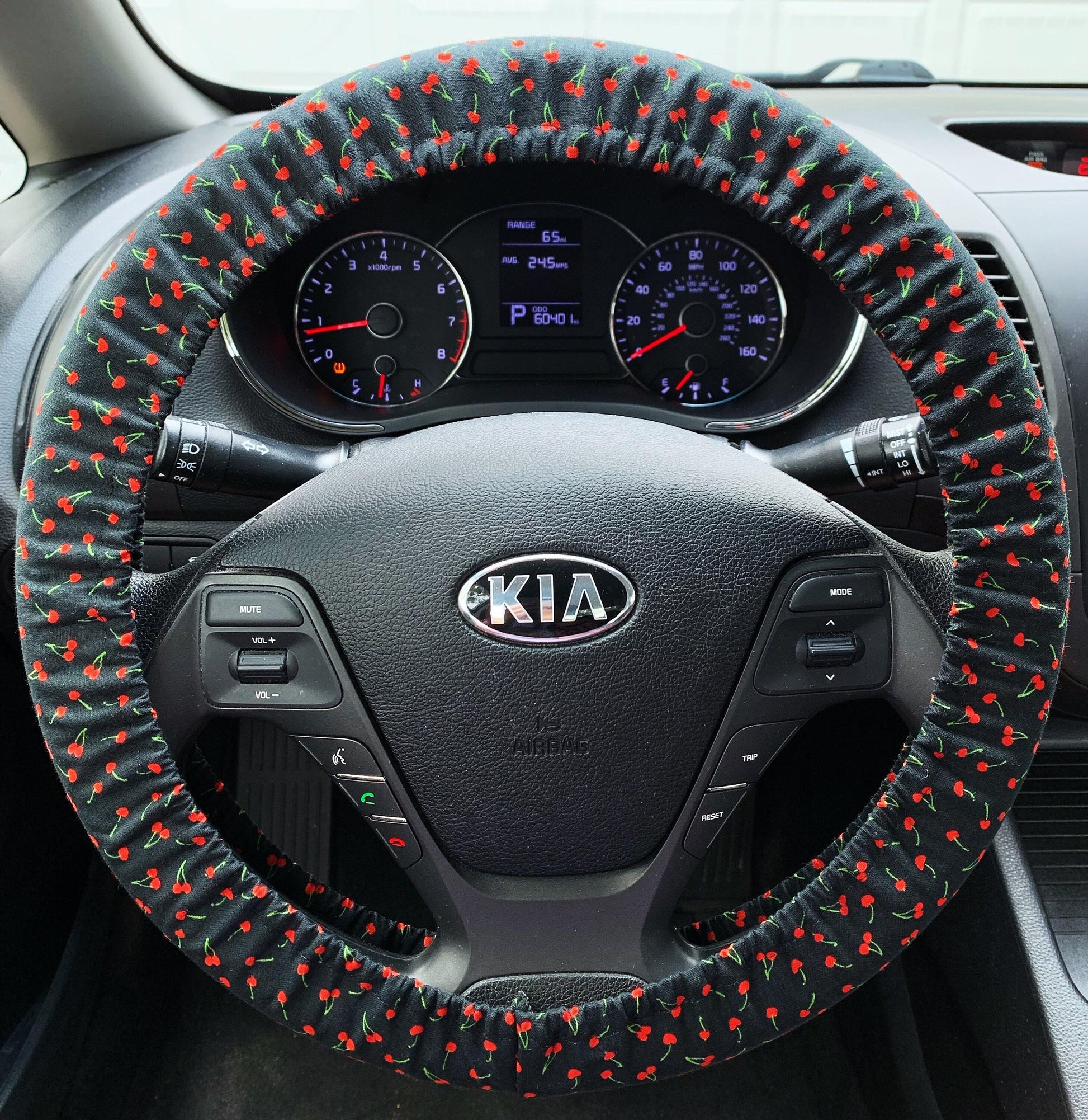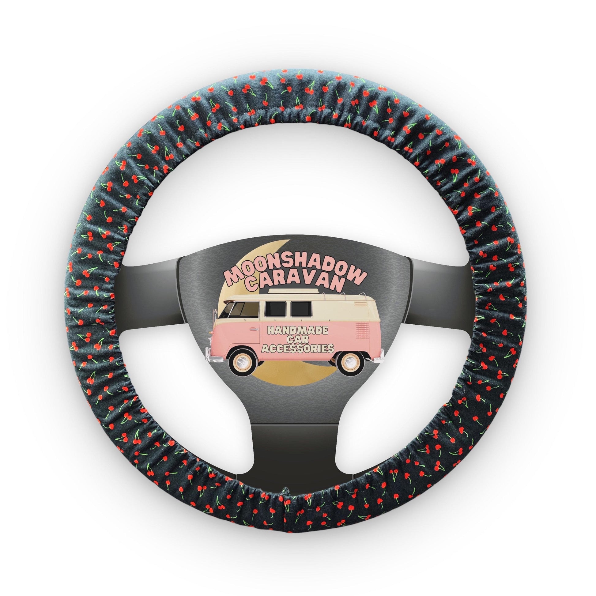 This tiny cherries on black handmade steering wheel cover is perfect for protecting your hands in cold and hot weather! Simply select your size for a custom fit and add some personality to your ride!