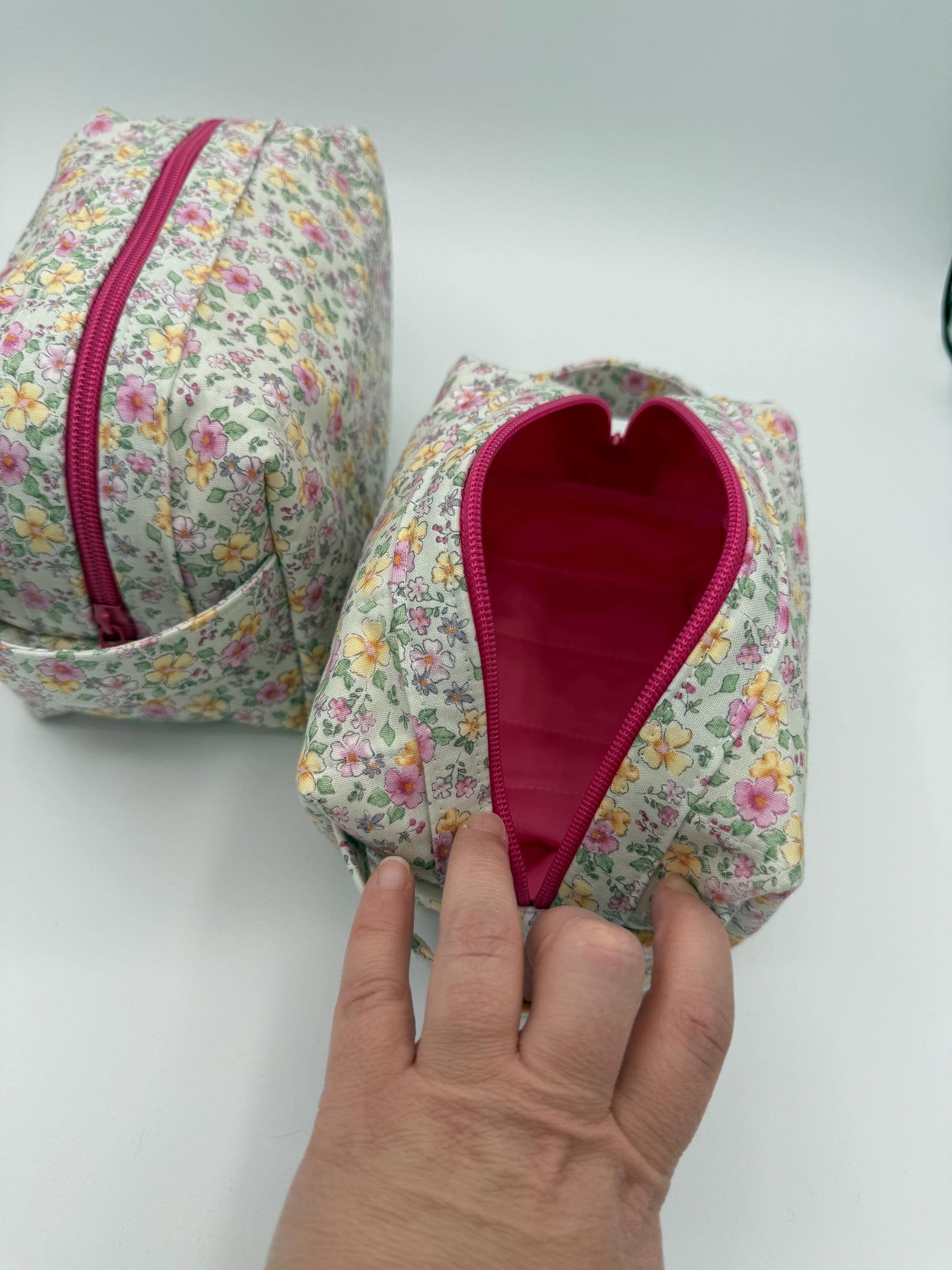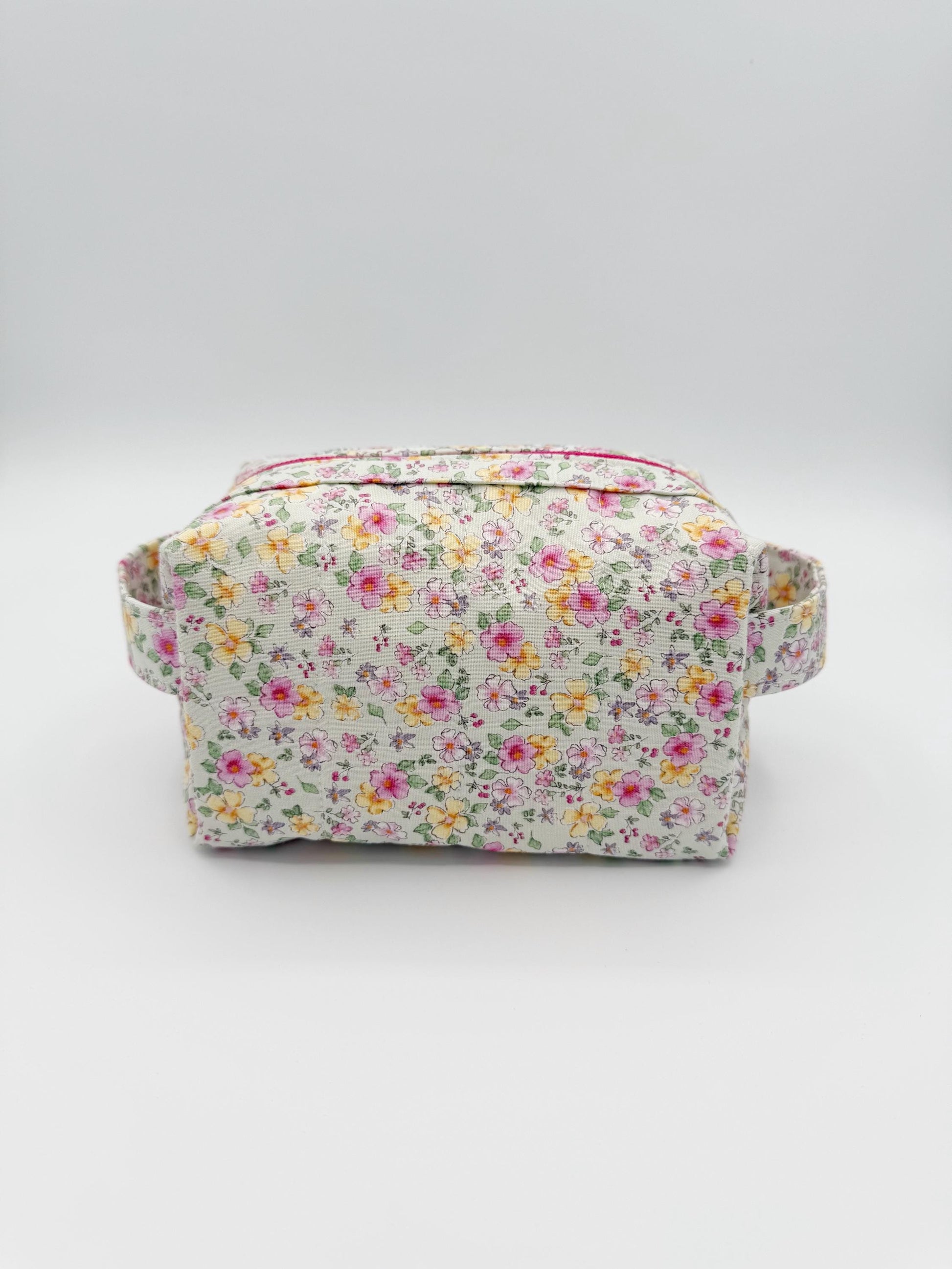 Vintage Style Floral Quilted Boxy Makeup Bag, Small Size